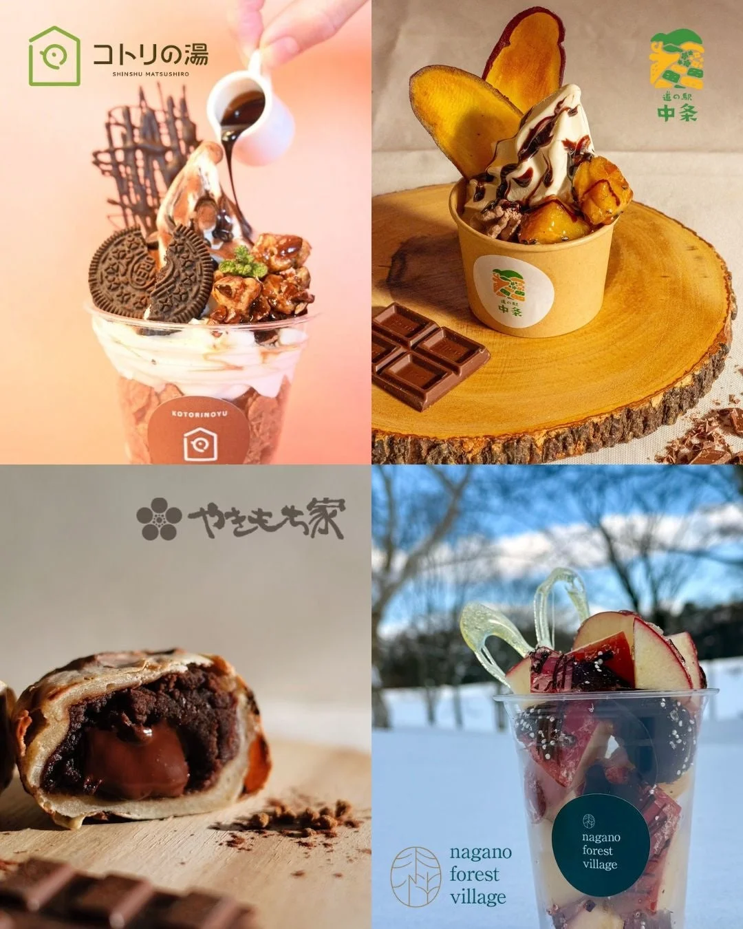 地元・中条産のさつまいもとチョコレートを組み合わせた、見た目も味わいも楽しめる商品が勢ぞろい。家族連れからカップルまで、幅広い世代にお楽しみいただける内容です。雄大な景色を眺めながら、冬限定のメニューを堪能するなんて、最高の思い出になりますね。