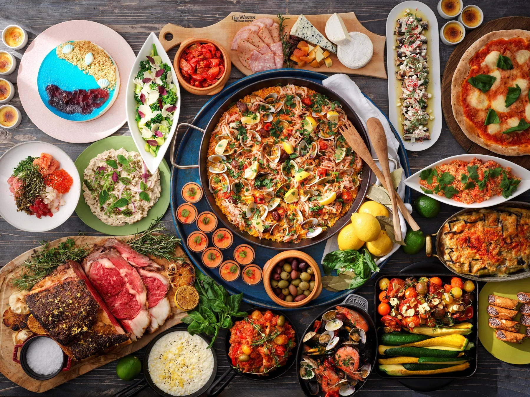 地中海と聞いて思い浮かぶのは、どこまでも広がる青い海と空、そして降り注ぐ明るい陽射し。そんな開放的な空気感を、パシフィック・テーブルのビュッフェでは地元の食材とともに表現しています。
